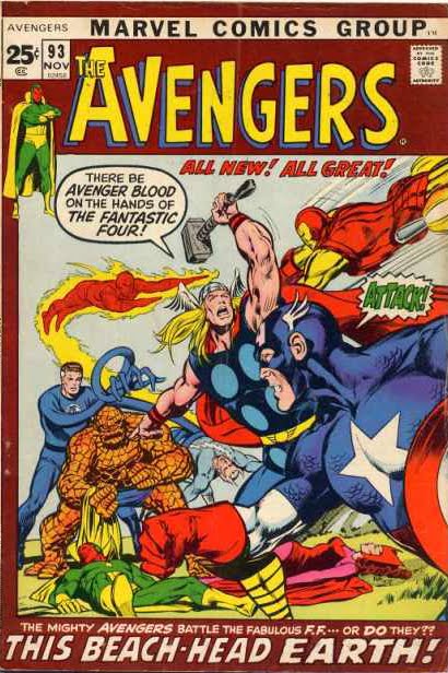 A lovely two-page spread by Barry Windsor Smith from Avengers #100.So you see, when it comes to the Avengers movie, I feel a bit like a Beatles fan who discovered the lads at the Cavern Club in 1961 and turns up his nose at those 60,000 screaming girls at Shea Stadium. Where were they when the Avengers fought the Man-Ape, the Space Phantom, or Valkyrie and her Lady Liberators? Where were they when the X-Men were a hundred times cooler, and the only Avengers anyone knew were John Steed and Emma Peel (about which the comic-book Avengers occasionally joked)? Oh, I paid some dues, pal. I paid.
