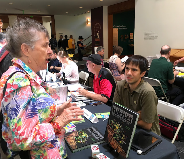 The celebration began with a talk by Jarrett Krosoczka, creator of the bestselling Jedi Academy and Lunch Lady series. Honestly, I missed that part because I was setting up for immediately after, when folks got to meet more than a dozen cartoonists, including me, in the museum's Great Hall. A lot of these photos were shot by my daughters Laura and Robin, who are much better tablers and salespeople than I am.