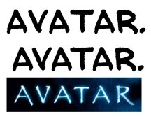 You can see the impact of kerning in a word like "AVATAR." The top example below has no kerning and there's too much air around the "V" and "T." The middle example has, I think, a nice amount of kerning. One of the loopier reviews I read of James Cameron's "Avatar" movie criticized the poor kerning of its poster font, at bottom. Curiously, the letter that looks most out of whack to me is the "R," which seems to be a light-year away from its "A." I guess when you earn a billion dollars you can kern any way you want.