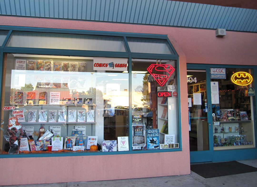 | Storefront of Illusive Comics & Games. If you look closely, you can see a row of my books in the window announcing the signing. Nice promotional hustle! |
