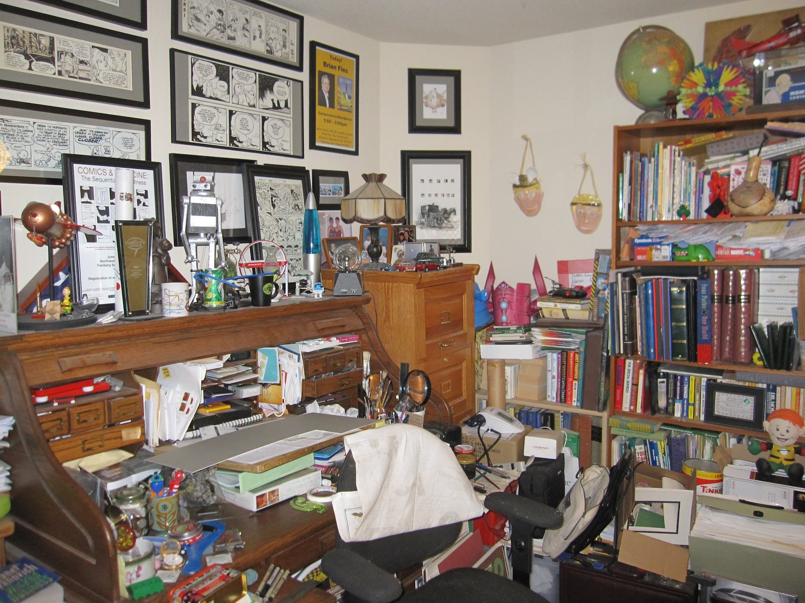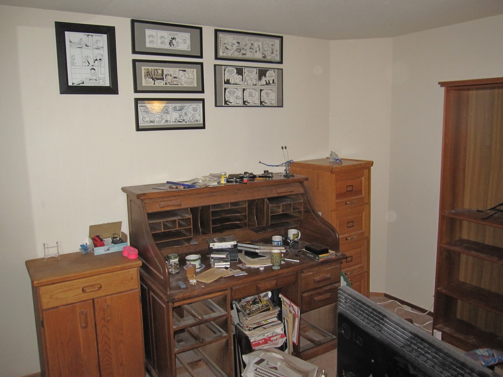 Karen and I are dedicating the next several days to redoing my office (it seems somehow pretentious to call it a "studio," but it is where I make all my comics in addition to doing my day job). It's a spare bedroom in our home that hasn't been painted since before we moved in, way back in the 20th Century, and is long overdue for a refurb. The challenge is that the room is packed: books piled in front of overflowing bookcases, storage boxes, crap atop crap. It makes for a cozy bear-den-like environment I actually find quite comfy, but even I concede it's time to run a river through these Augean Stables. The only way this'll work is if a lot of things leave the room and don't get back in.