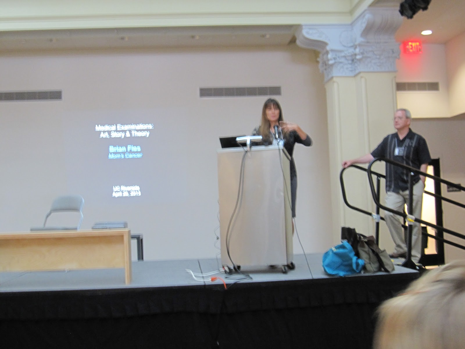 Many of the attendees were grad students and undergrads hopelessly devoted to Juliet McMullin, the UC Riverside professor who organized the conference. Some had contributed to the artwork exhibited along the sides the room, and a lot of them had read Mom's Cancer, which was gratifying.