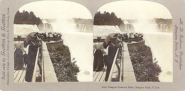 Stereo cards were often published in series with common themes: world travel, religious tableau, slice of life. Some were saucy. These cards would have provided a startling "you are there" experience for people who seldom went anywhere. The Holy Land and other exotic locales were popular topics. World capitals. Natural wonders. And folks sure used to love taking 3-D photos of Niagara Falls.