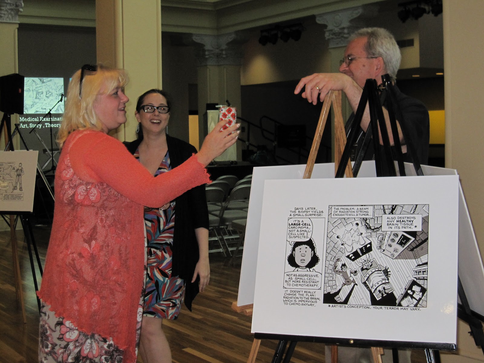 I think my own talk went well. I had three basic goals: make the case that comics are a medium with unique abilities to tell stories in ways no other medium can; talk about the idea of "community" (communities of family, friends, caregivers, humanity) within Mom's Cancer; and introduce the idea of Graphic Medicine as a body of comics work with its own history and value. That's a lot.