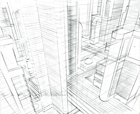 | Also three-point perspective, this time looking down. All these lines were originally light blue. |